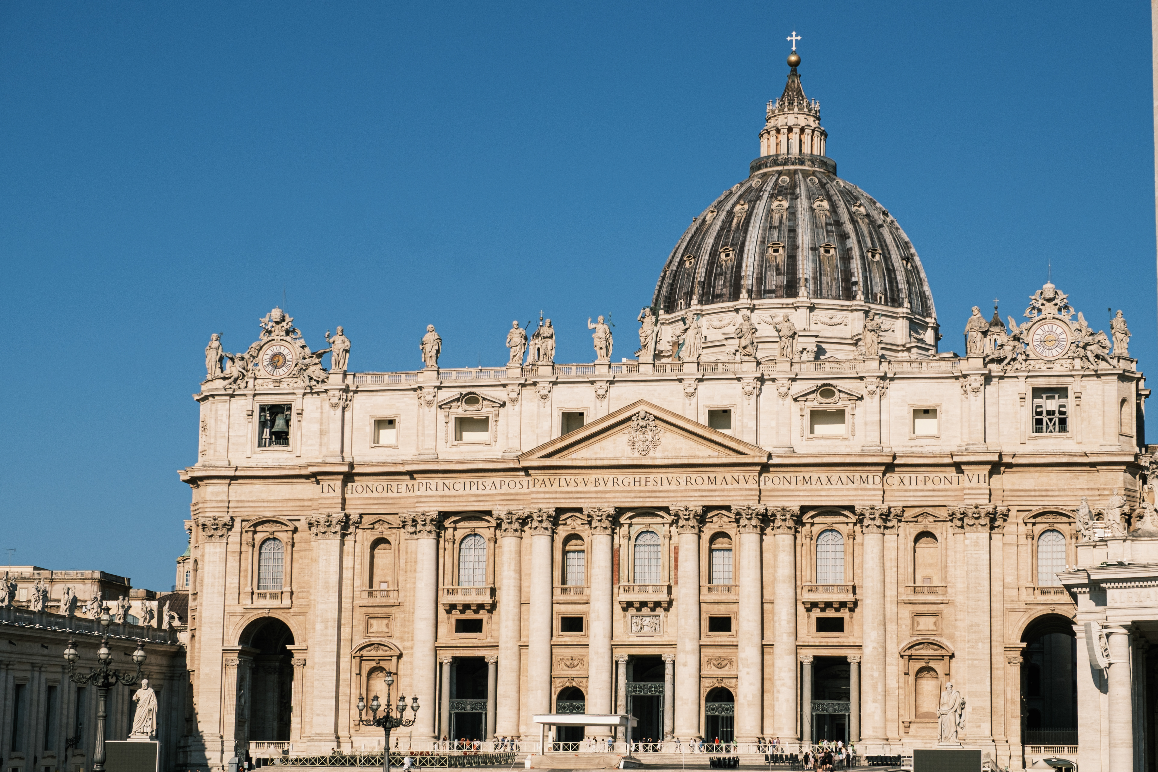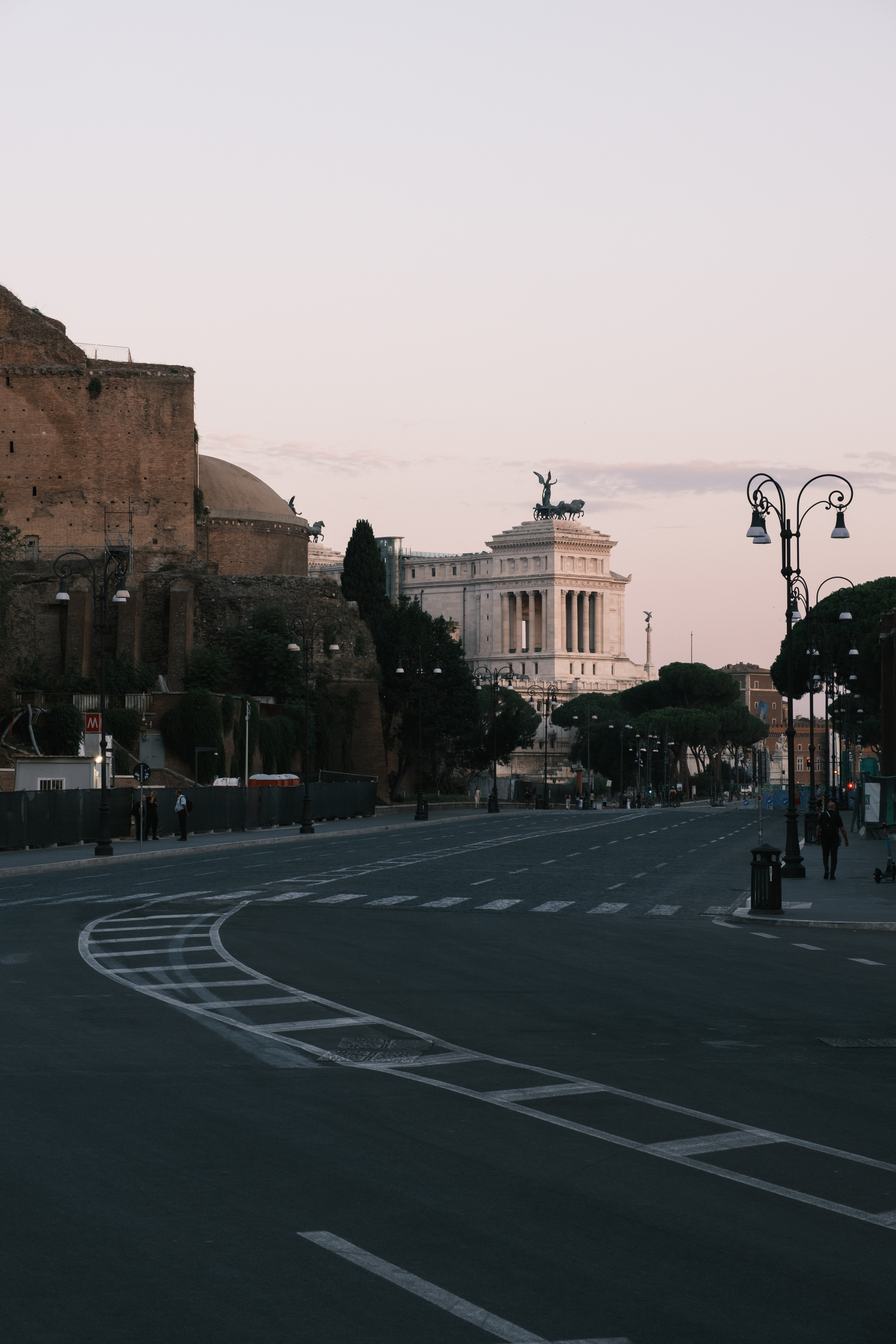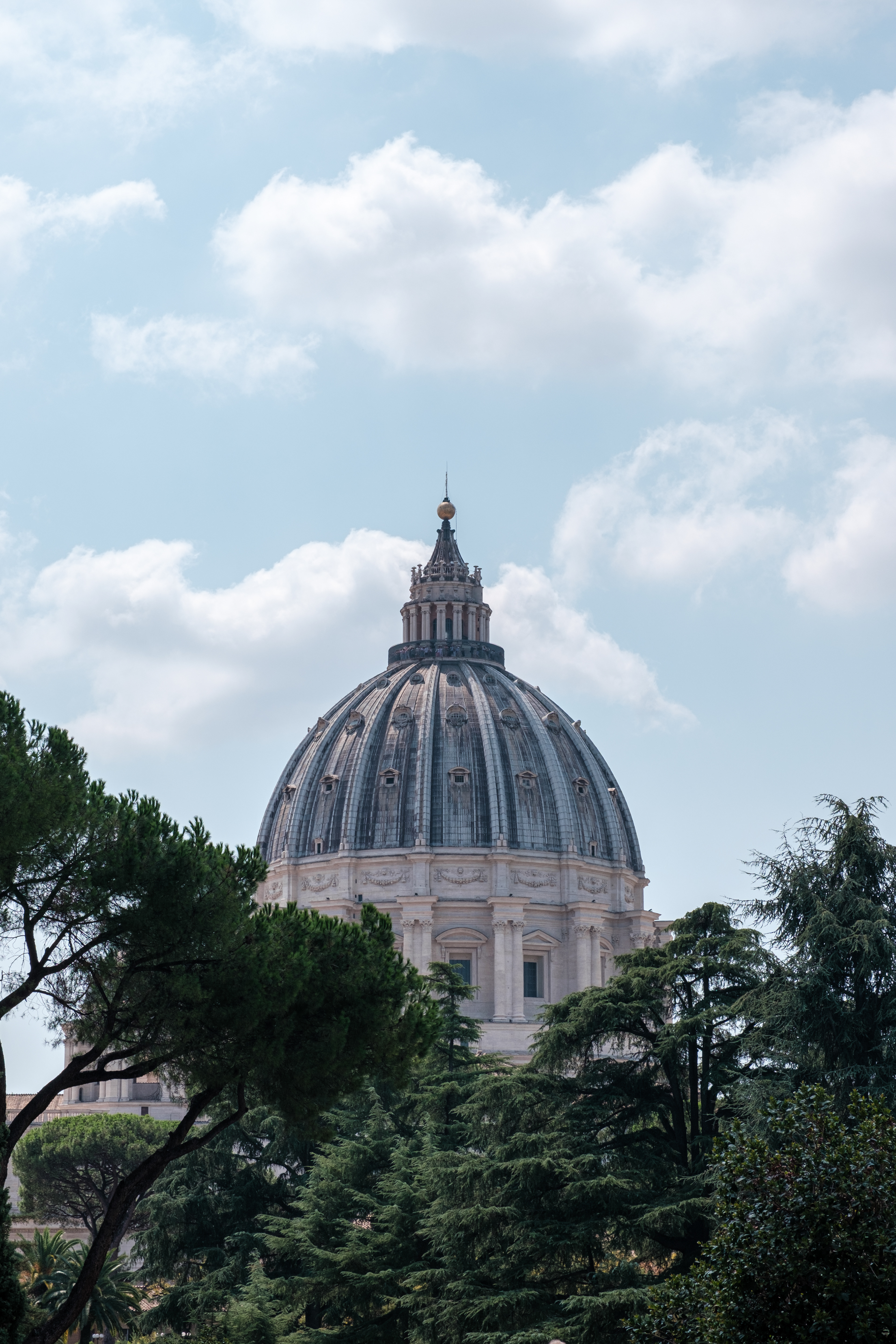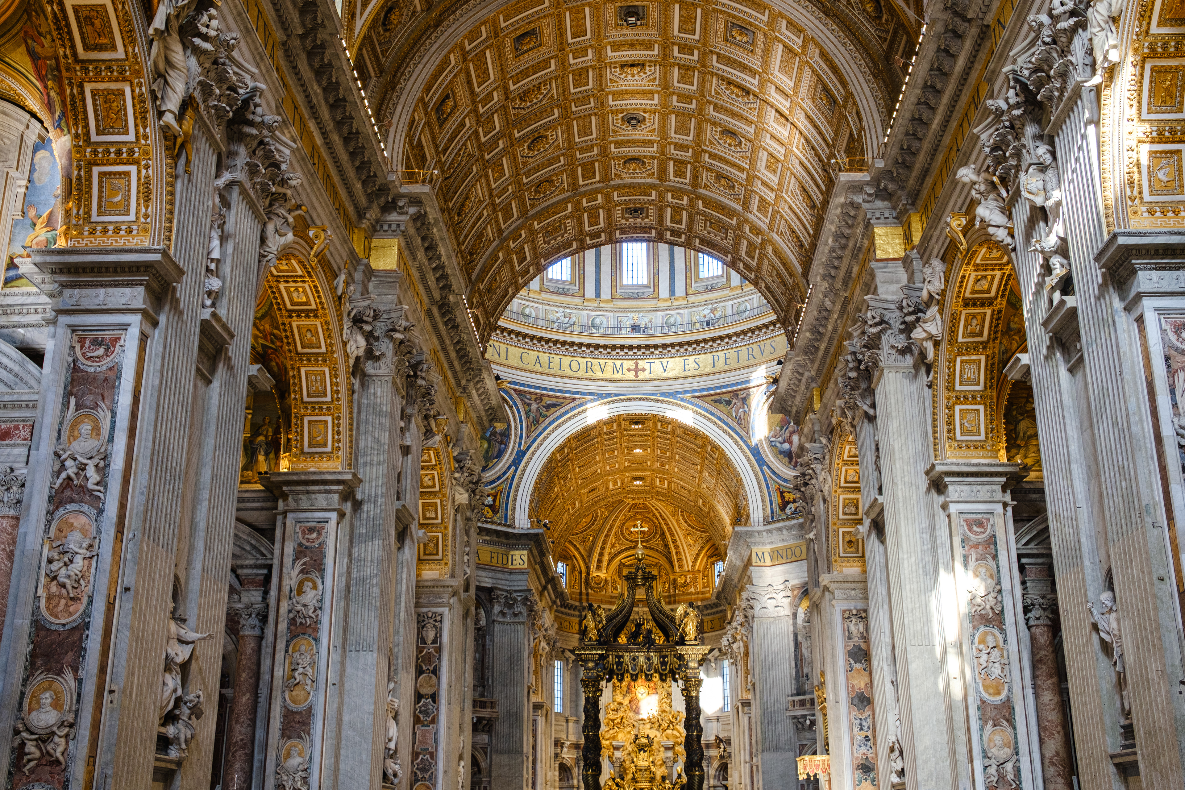 Am Ankunftstag in Rom wagten wir es Abends noch in die Stadt und erarbeiteten uns die ersten Fotospots. Wir planten, am nächsten Morgen früh aufzustehen, um dann von einer menschenleeren Stadt Fotos machen zu können. So ging es am nächsten Tag um 6 Uhr los in das Stadtzentrum, wo wir mit dem Sonnenaufgang ankamen. Das Klischee, die Italiener würden bis zum Vormittag ausschlafen, muss ich revidieren. Die U-Bahn war voll. So schlenderten wir vom Kolosseum vorbei am Forum Romanum Richtung Pantheon, klapperten unsere am Vortag ausgemachten Spots ab und genossen am Pantheon ein typisch italienisches Frühstück. Zwei Croissants, zwei Cappuccino, stehend an der Bar, für insgesamt 5 Euro. Herrlich. Für das Pantheon hatten wir Tickets für den Vormittag, so hatten wir jetzt am Morgen noch etwas Zeit und beschlossen den Versuch in den Petersdom zu gelangen. Dort ist der Eintritt frei, jedoch eine Wartezeit von ein bis drei Stunden nicht unüblich. So waren wir ziemlich überrascht als wir dort ankamen und einfach reinspazieren konnten. Das hatten wir uns schwieriger vorgestellt. Anscheinend schliefen die Touristen um halb Neun alle noch und so konnten wir den Dom noch genießen ohne Bauch an Bauch zu stehen. Der Petersdom ist in seinen Größenrelationen so gebaut, dass man das Gefühl für die schiere Größe verliert. So denkt man sich erst nicht viel dabei, wenn man die Schriftzüge auf dem Fries am Fuße der Kuppel betrachtet. Sah man oberhalb der Buchstaben die Menschen die Kuppel hochlaufen, wurden einem die Abmaße dieser Schriftzüge bewusst. Zwei Meter hoch sind diese Buchstaben, verrückt. Die Säulen auf denen die Kuppel sich abstützte, luden vom Umfang aus zur Tageswanderung ein. Dieser Ort strotzte nur so vor Prunk. Man kam aus dem Staunen nicht mehr raus. Nachdem wir genug gestaunt hatten, ging es nun wieder Richtung Pantheon. Ein alter Tempel, der später zu einer Kirche umfunktioniert wurde. Dafür das dieser Kollege rund 1900 Jahre alt ist, wirkte er noch gut in Schuss. Ich ziehe meinen nicht vorhandenen Hut. Danach ging es zur Siesta wieder ins kühle Heim. Am Abend ging es noch zum Supermarkt für leckere selbst belegte Focaccia Brote.