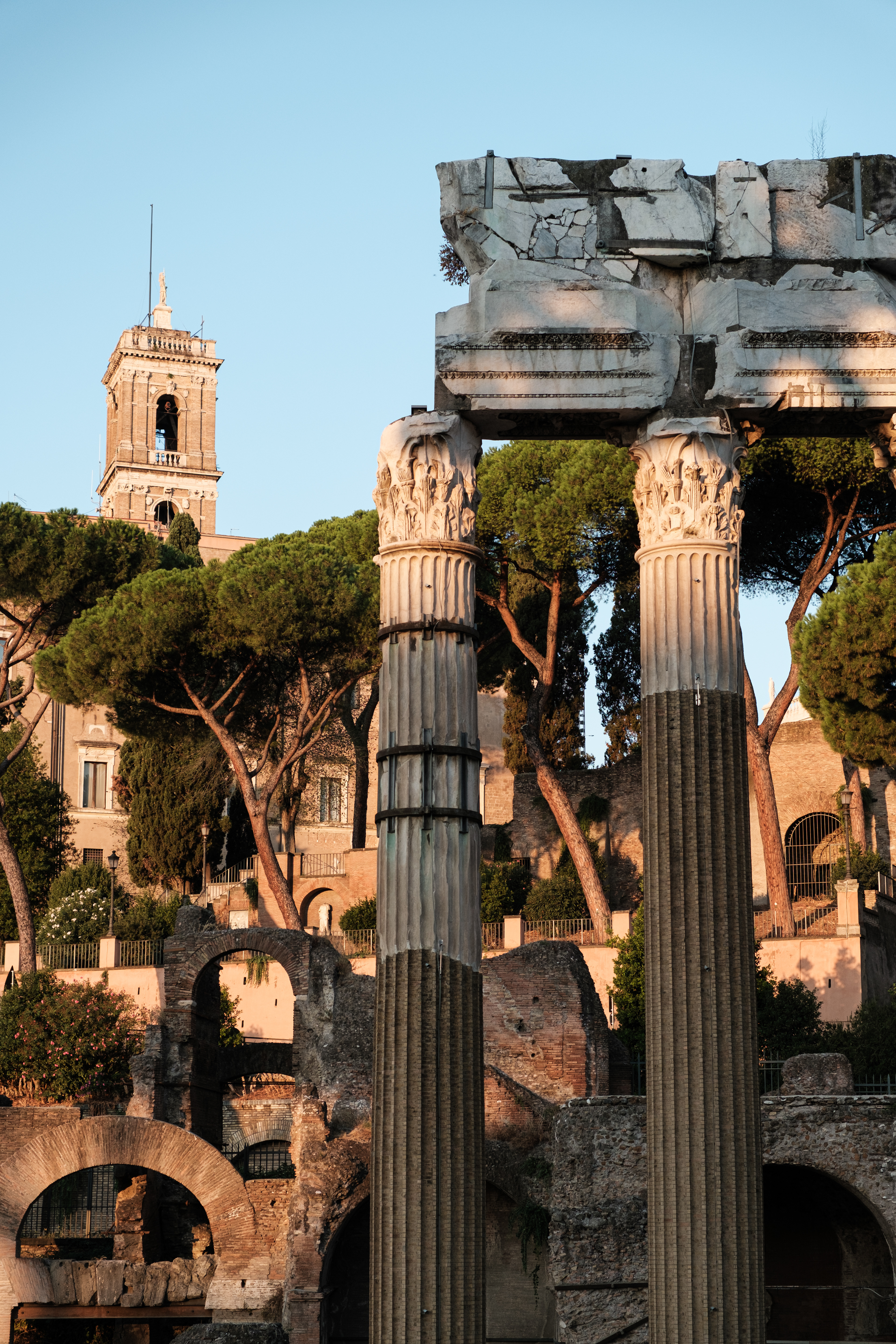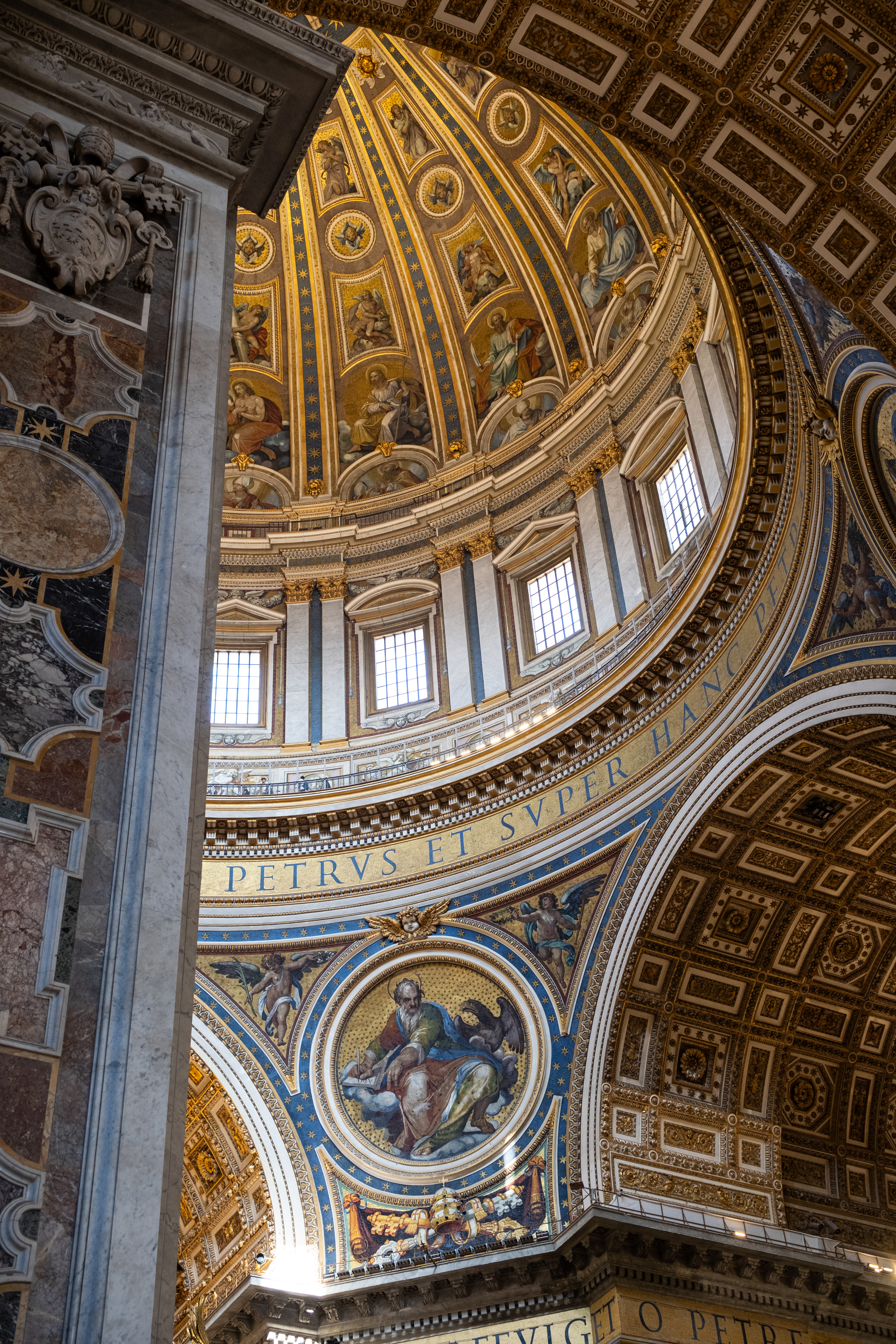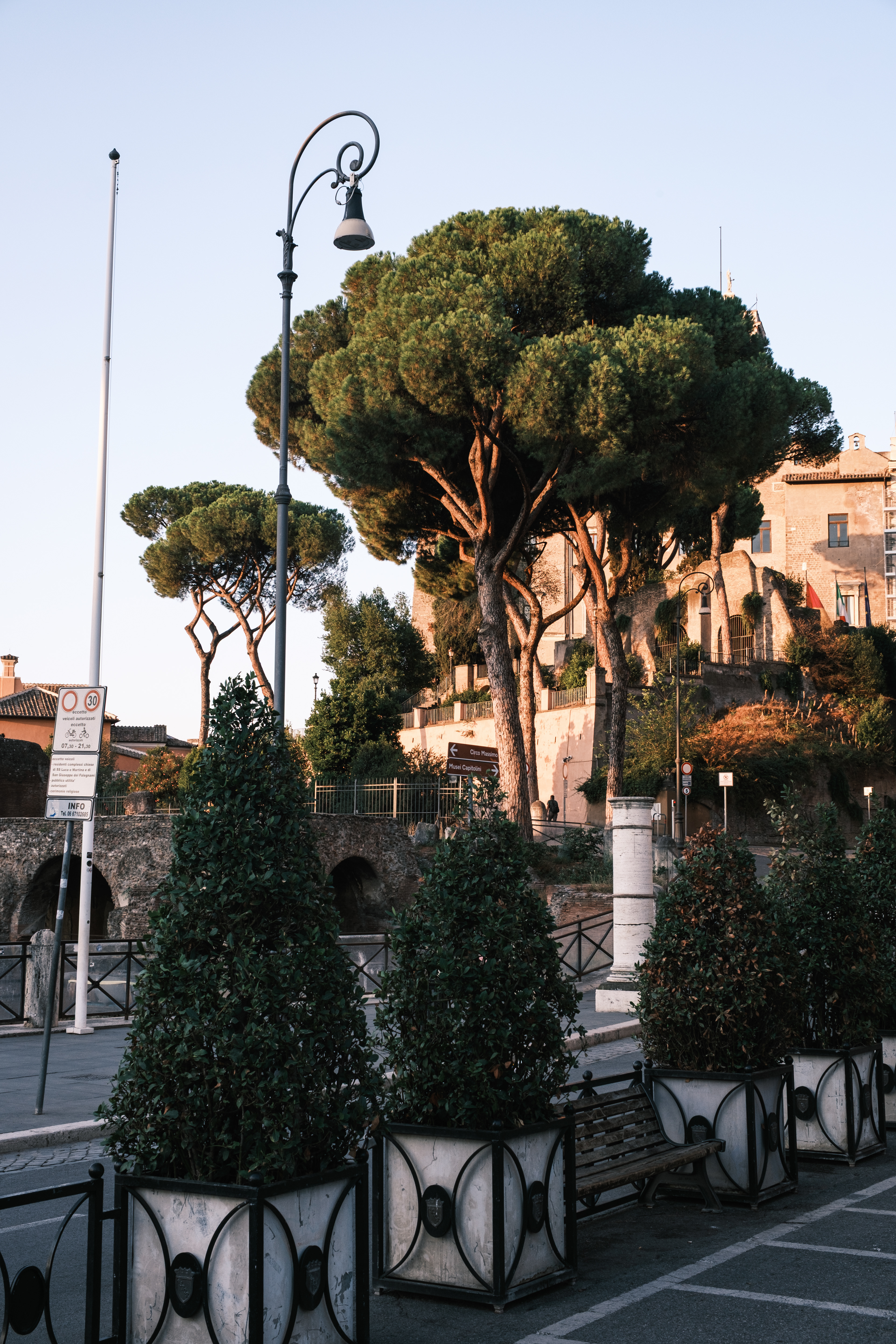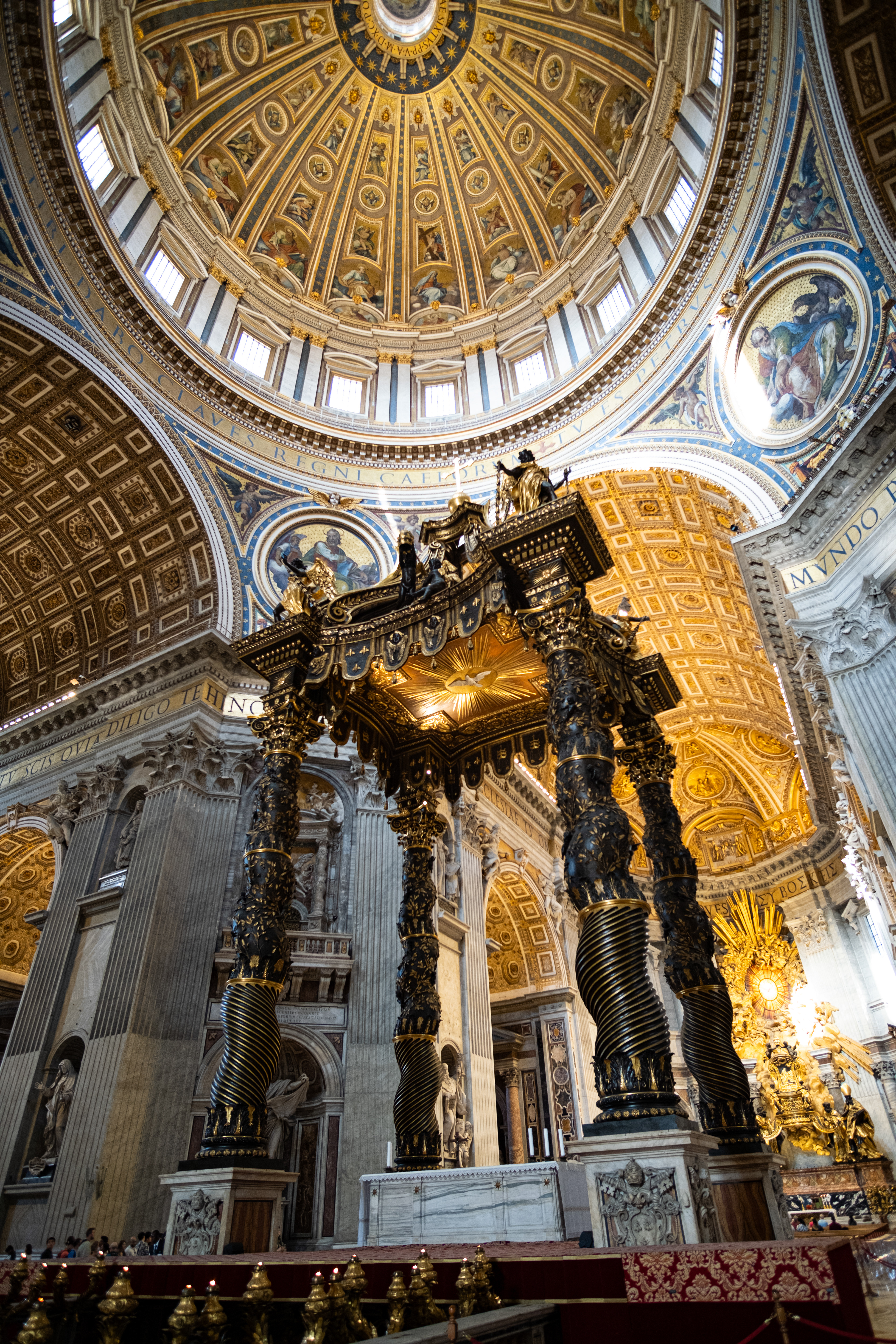 Am Ankunftstag in Rom wagten wir es Abends noch in die Stadt und erarbeiteten uns die ersten Fotospots. Wir planten, am nächsten Morgen früh aufzustehen, um dann von einer menschenleeren Stadt Fotos machen zu können. So ging es am nächsten Tag um 6 Uhr los in das Stadtzentrum, wo wir mit dem Sonnenaufgang ankamen. Das Klischee, die Italiener würden bis zum Vormittag ausschlafen, muss ich revidieren. Die U-Bahn war voll. So schlenderten wir vom Kolosseum vorbei am Forum Romanum Richtung Pantheon, klapperten unsere am Vortag ausgemachten Spots ab und genossen am Pantheon ein typisch italienisches Frühstück. Zwei Croissants, zwei Cappuccino, stehend an der Bar, für insgesamt 5 Euro. Herrlich. Für das Pantheon hatten wir Tickets für den Vormittag, so hatten wir jetzt am Morgen noch etwas Zeit und beschlossen den Versuch in den Petersdom zu gelangen. Dort ist der Eintritt frei, jedoch eine Wartezeit von ein bis drei Stunden nicht unüblich. So waren wir ziemlich überrascht als wir dort ankamen und einfach reinspazieren konnten. Das hatten wir uns schwieriger vorgestellt. Anscheinend schliefen die Touristen um halb Neun alle noch und so konnten wir den Dom noch genießen ohne Bauch an Bauch zu stehen. Der Petersdom ist in seinen Größenrelationen so gebaut, dass man das Gefühl für die schiere Größe verliert. So denkt man sich erst nicht viel dabei, wenn man die Schriftzüge auf dem Fries am Fuße der Kuppel betrachtet. Sah man oberhalb der Buchstaben die Menschen die Kuppel hochlaufen, wurden einem die Abmaße dieser Schriftzüge bewusst. Zwei Meter hoch sind diese Buchstaben, verrückt. Die Säulen auf denen die Kuppel sich abstützte, luden vom Umfang aus zur Tageswanderung ein. Dieser Ort strotzte nur so vor Prunk. Man kam aus dem Staunen nicht mehr raus. Nachdem wir genug gestaunt hatten, ging es nun wieder Richtung Pantheon. Ein alter Tempel, der später zu einer Kirche umfunktioniert wurde. Dafür das dieser Kollege rund 1900 Jahre alt ist, wirkte er noch gut in Schuss. Ich ziehe meinen nicht vorhandenen Hut. Danach ging es zur Siesta wieder ins kühle Heim. Am Abend ging es noch zum Supermarkt für leckere selbst belegte Focaccia Brote.