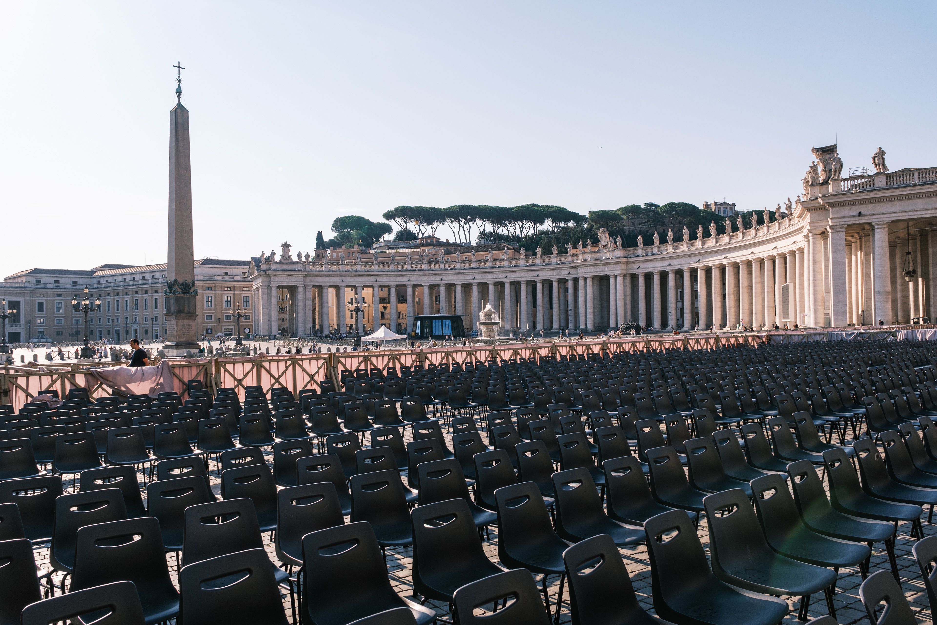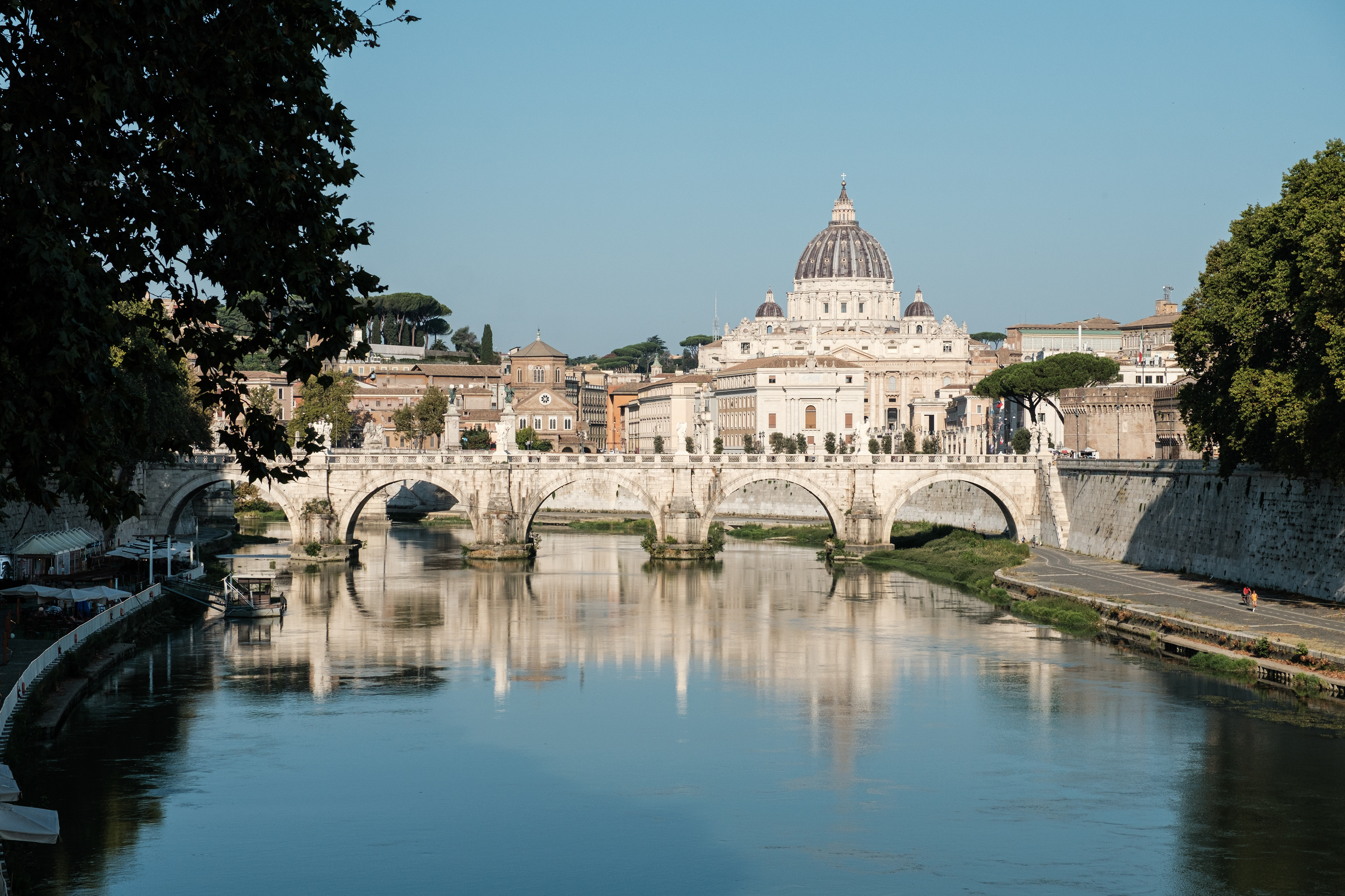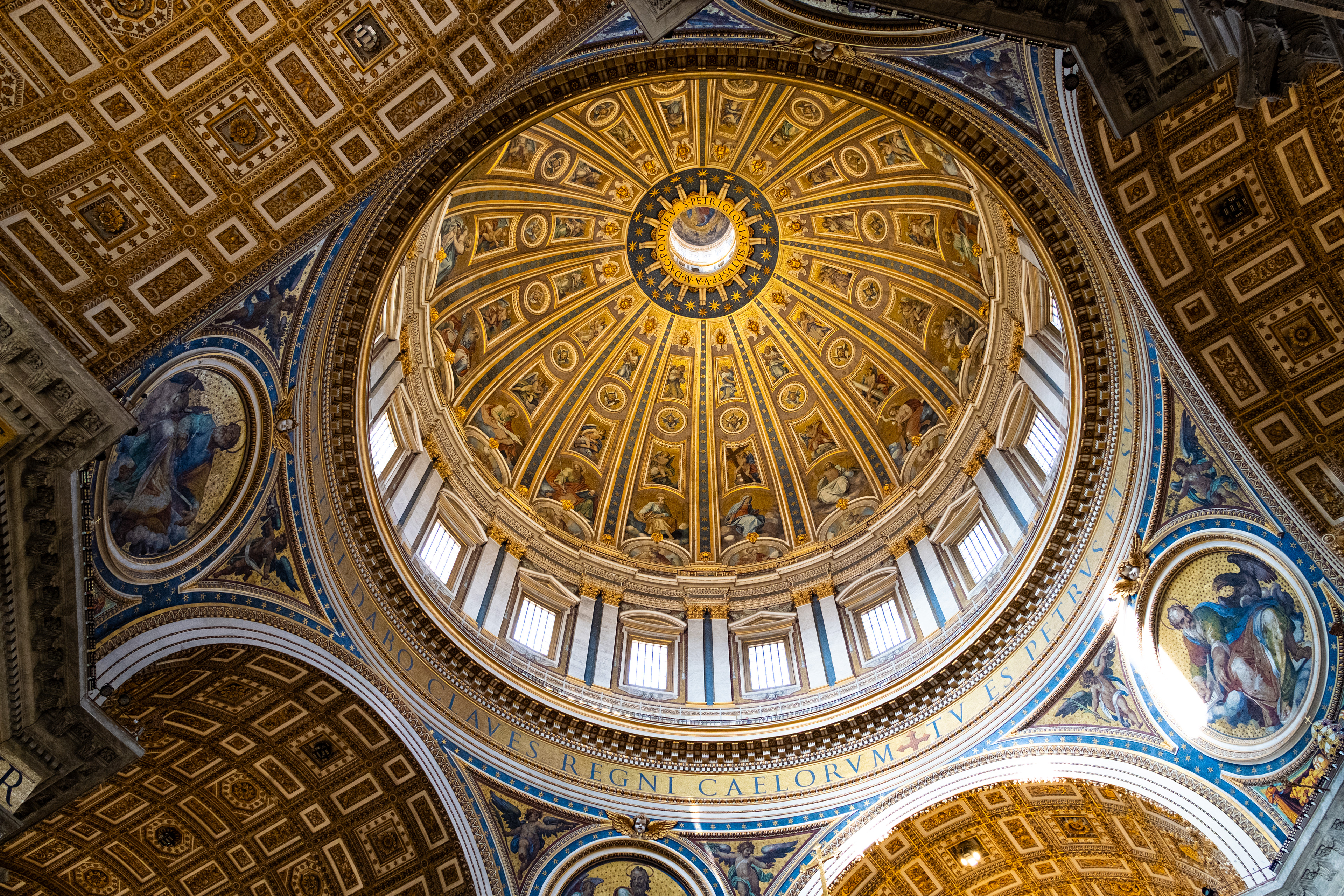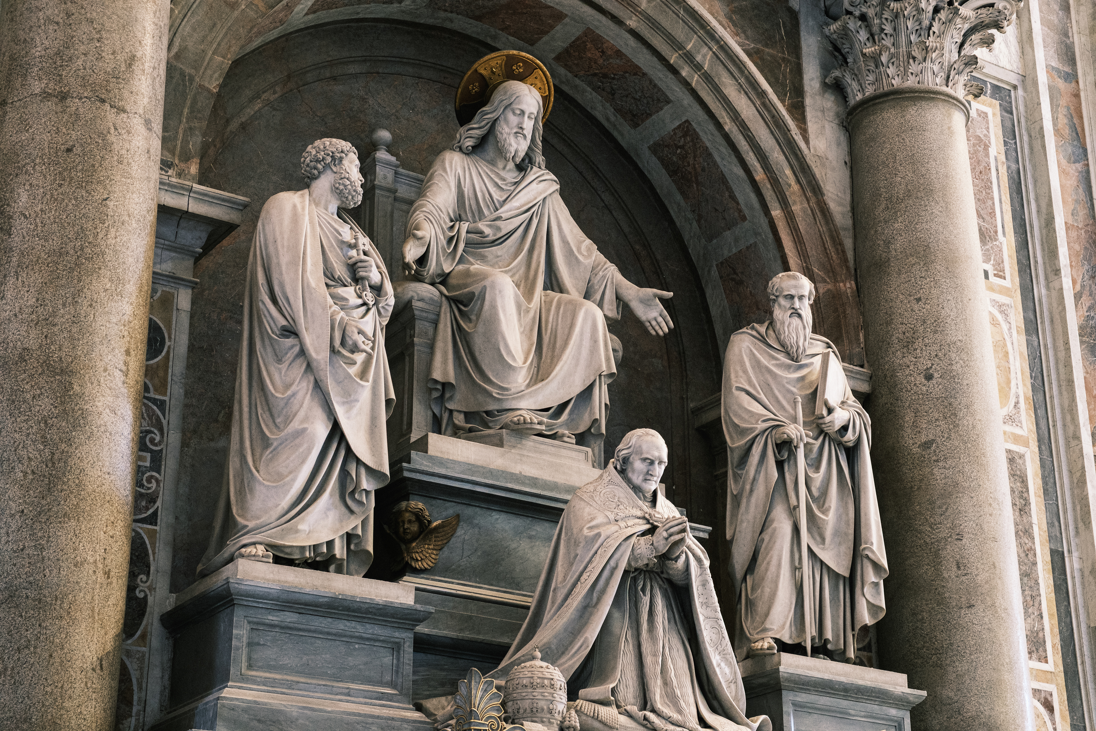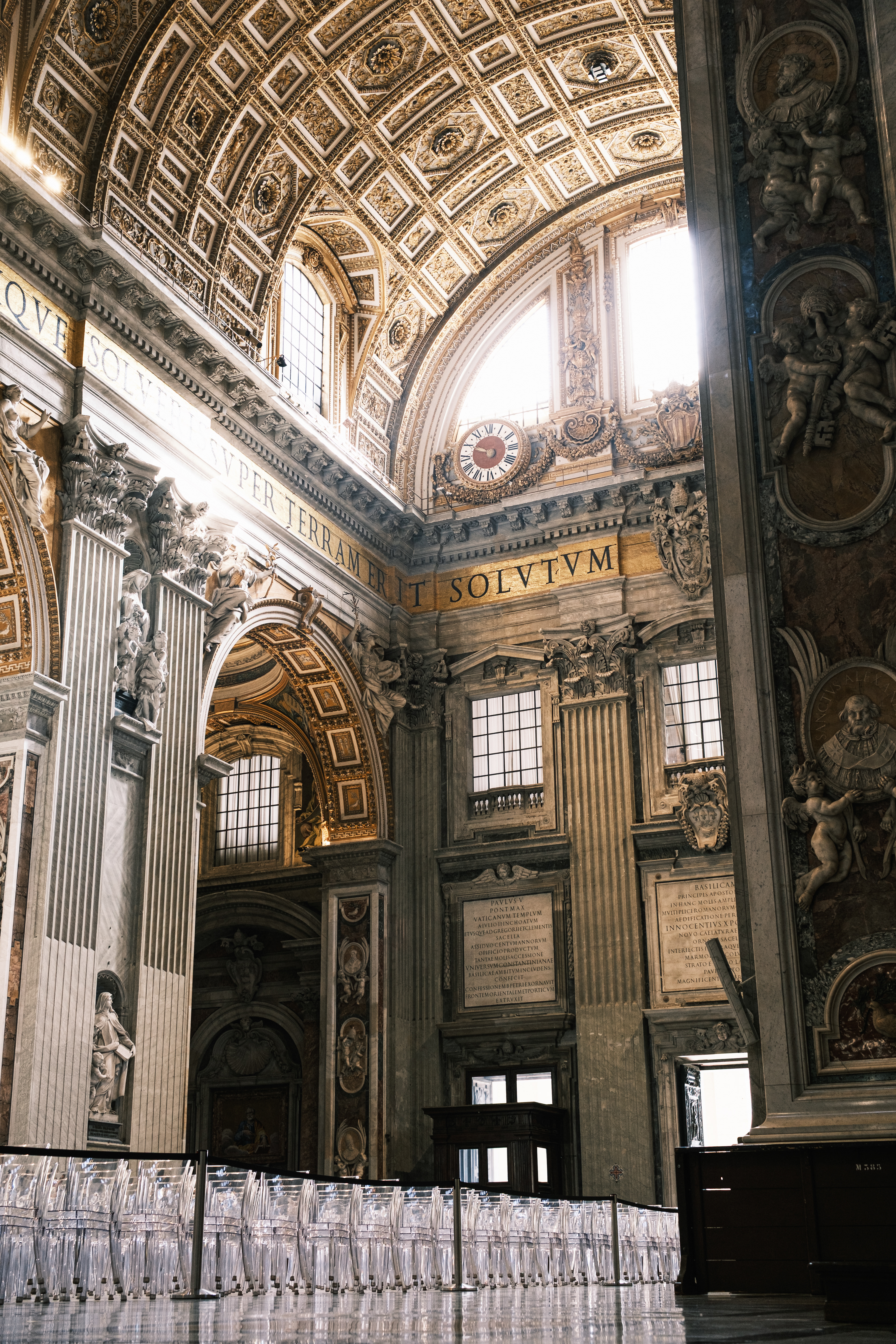 Am Ankunftstag in Rom wagten wir es Abends noch in die Stadt und erarbeiteten uns die ersten Fotospots. Wir planten, am nächsten Morgen früh aufzustehen, um dann von einer menschenleeren Stadt Fotos machen zu können. So ging es am nächsten Tag um 6 Uhr los in das Stadtzentrum, wo wir mit dem Sonnenaufgang ankamen. Das Klischee, die Italiener würden bis zum Vormittag ausschlafen, muss ich revidieren. Die U-Bahn war voll. So schlenderten wir vom Kolosseum vorbei am Forum Romanum Richtung Pantheon, klapperten unsere am Vortag ausgemachten Spots ab und genossen am Pantheon ein typisch italienisches Frühstück. Zwei Croissants, zwei Cappuccino, stehend an der Bar, für insgesamt 5 Euro. Herrlich. Für das Pantheon hatten wir Tickets für den Vormittag, so hatten wir jetzt am Morgen noch etwas Zeit und beschlossen den Versuch in den Petersdom zu gelangen. Dort ist der Eintritt frei, jedoch eine Wartezeit von ein bis drei Stunden nicht unüblich. So waren wir ziemlich überrascht als wir dort ankamen und einfach reinspazieren konnten. Das hatten wir uns schwieriger vorgestellt. Anscheinend schliefen die Touristen um halb Neun alle noch und so konnten wir den Dom noch genießen ohne Bauch an Bauch zu stehen. Der Petersdom ist in seinen Größenrelationen so gebaut, dass man das Gefühl für die schiere Größe verliert. So denkt man sich erst nicht viel dabei, wenn man die Schriftzüge auf dem Fries am Fuße der Kuppel betrachtet. Sah man oberhalb der Buchstaben die Menschen die Kuppel hochlaufen, wurden einem die Abmaße dieser Schriftzüge bewusst. Zwei Meter hoch sind diese Buchstaben, verrückt. Die Säulen auf denen die Kuppel sich abstützte, luden vom Umfang aus zur Tageswanderung ein. Dieser Ort strotzte nur so vor Prunk. Man kam aus dem Staunen nicht mehr raus. Nachdem wir genug gestaunt hatten, ging es nun wieder Richtung Pantheon. Ein alter Tempel, der später zu einer Kirche umfunktioniert wurde. Dafür das dieser Kollege rund 1900 Jahre alt ist, wirkte er noch gut in Schuss. Ich ziehe meinen nicht vorhandenen Hut. Danach ging es zur Siesta wieder ins kühle Heim. Am Abend ging es noch zum Supermarkt für leckere selbst belegte Focaccia Brote.