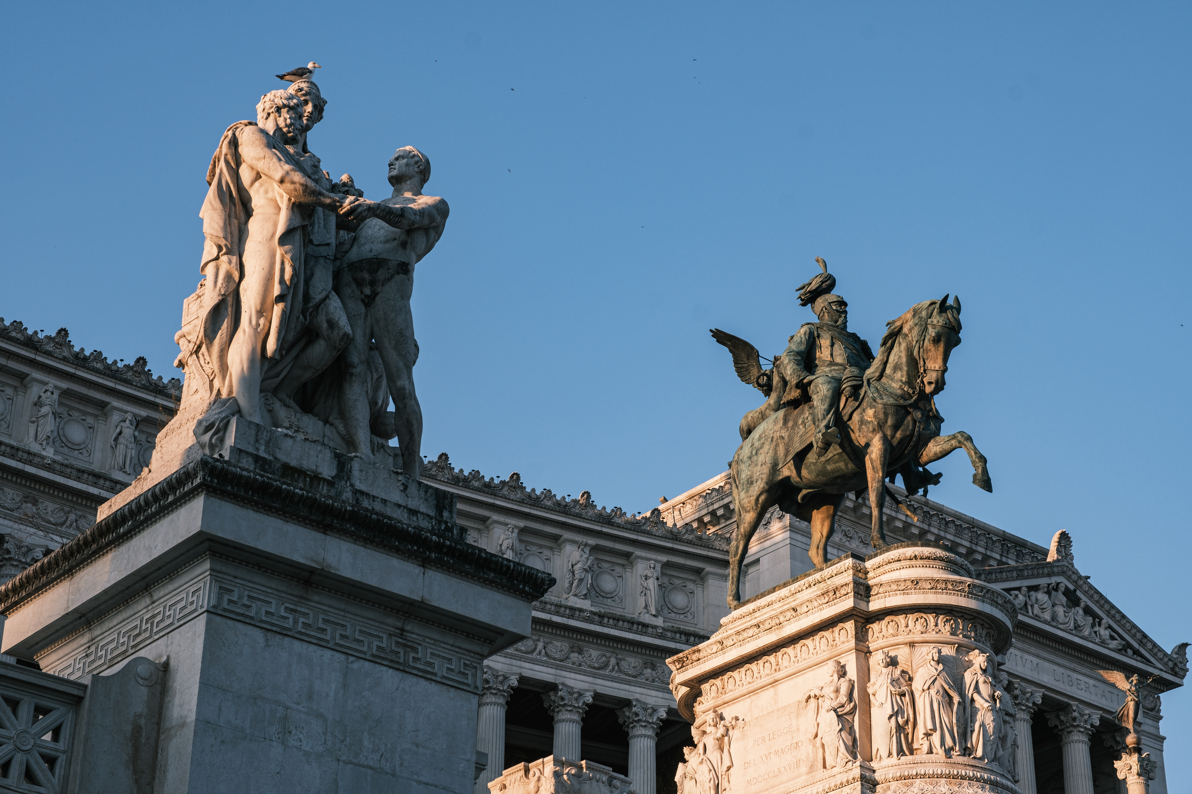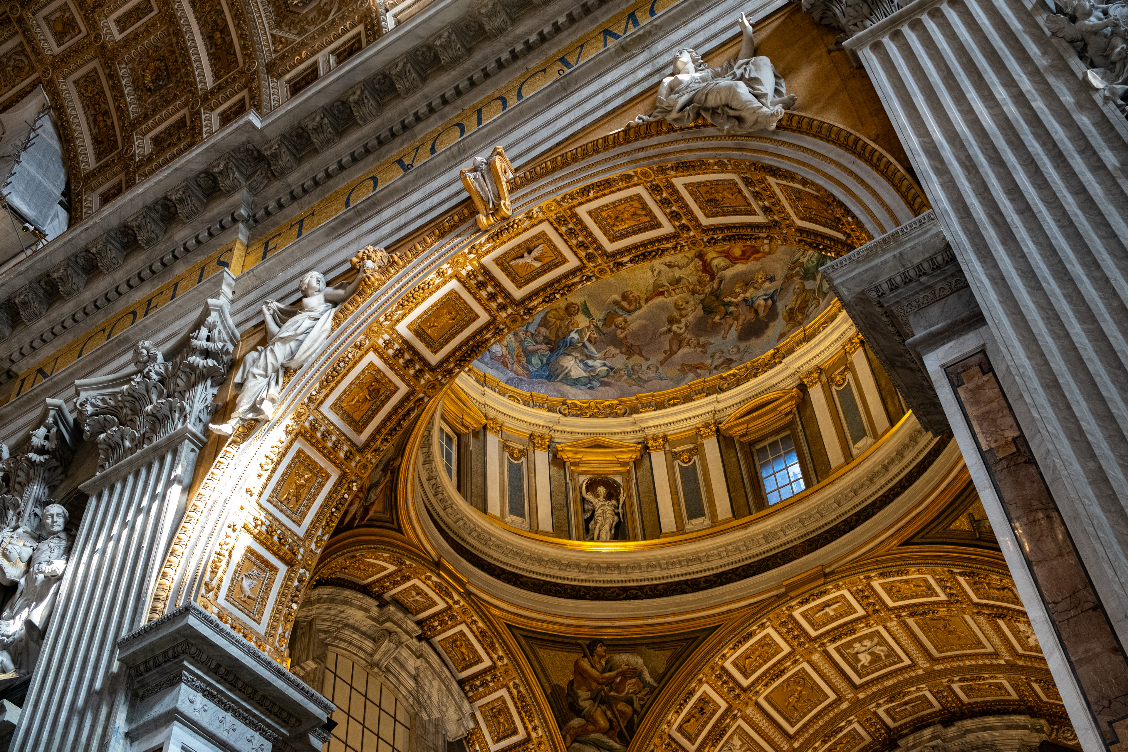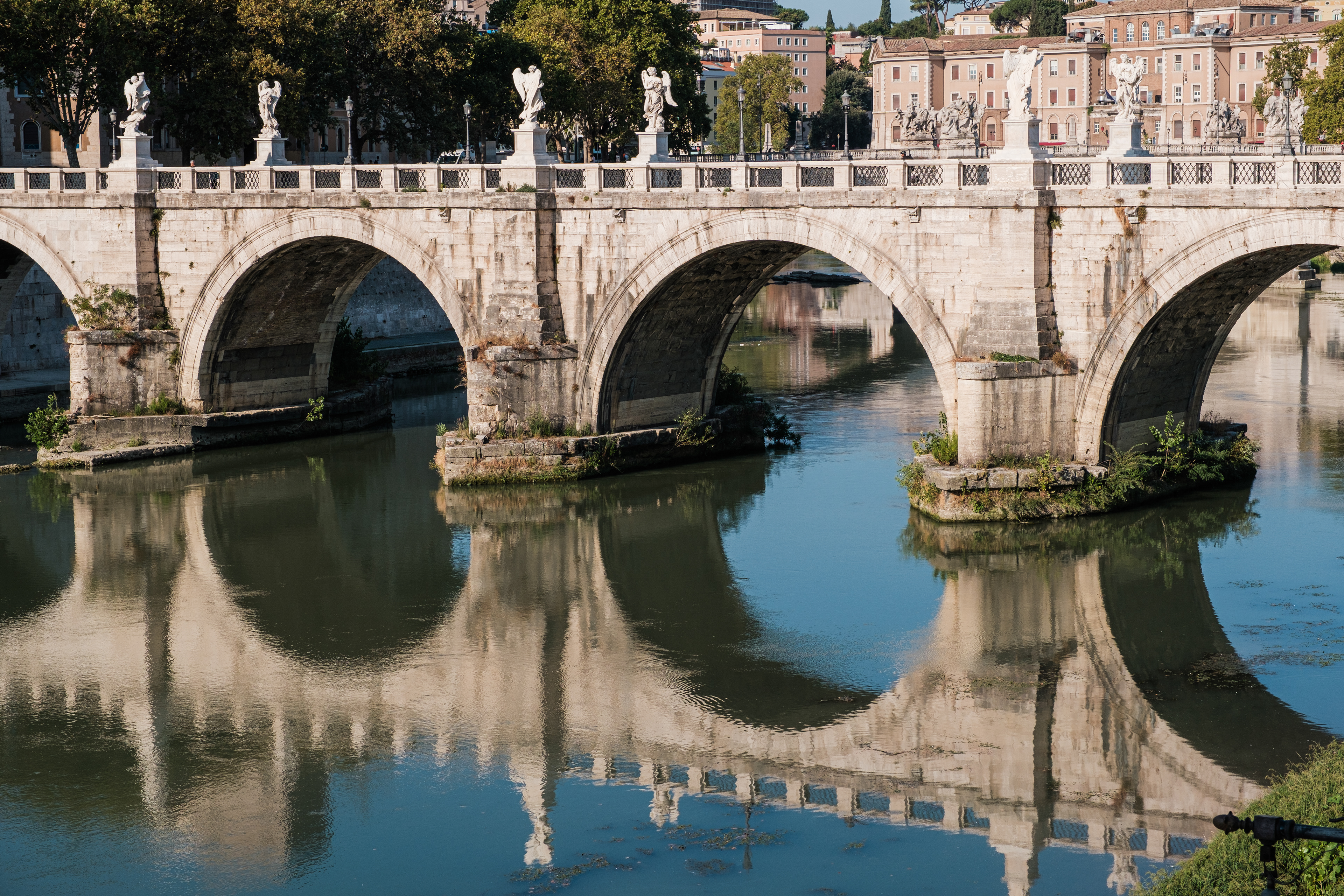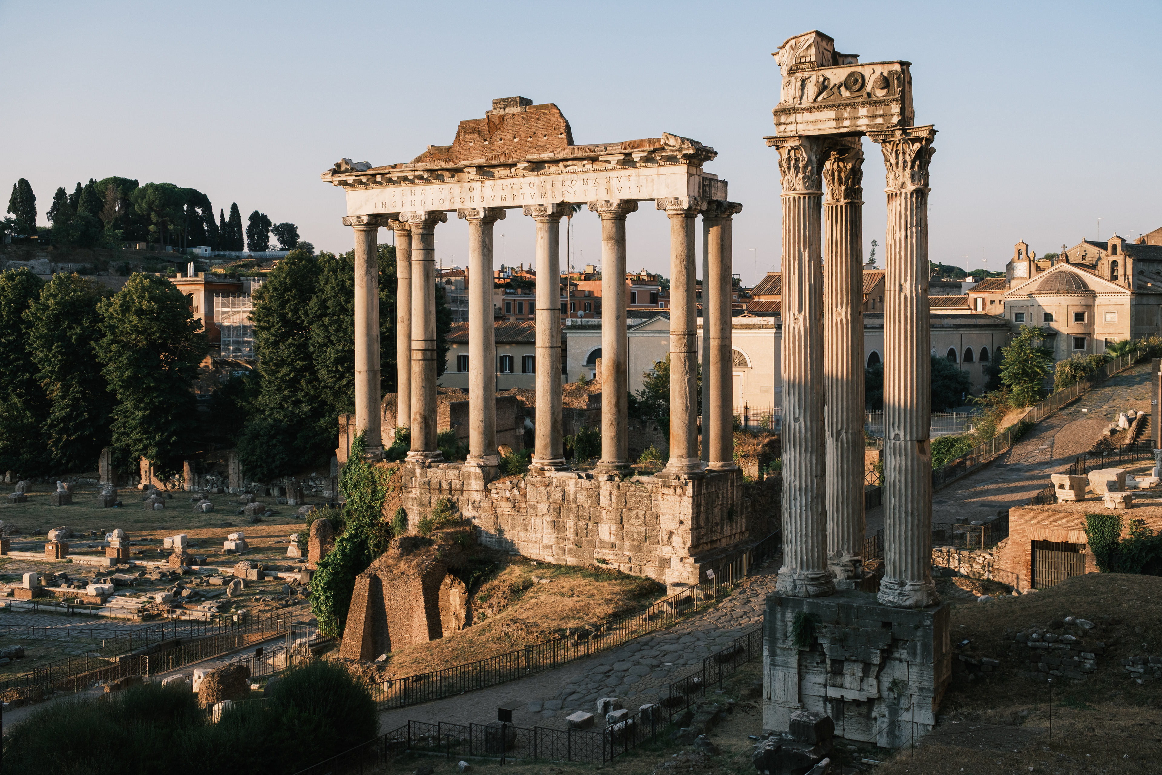Am Ankunftstag in Rom wagten wir es Abends noch in die Stadt und erarbeiteten uns die ersten Fotospots. Wir planten, am nächsten Morgen früh aufzustehen, um dann von einer menschenleeren Stadt Fotos machen zu können. So ging es am nächsten Tag um 6 Uhr los in das Stadtzentrum, wo wir mit dem Sonnenaufgang ankamen. Das Klischee, die Italiener würden bis zum Vormittag ausschlafen, muss ich revidieren. Die U-Bahn war voll. So schlenderten wir vom Kolosseum vorbei am Forum Romanum Richtung Pantheon, klapperten unsere am Vortag ausgemachten Spots ab und genossen am Pantheon ein typisch italienisches Frühstück. Zwei Croissants, zwei Cappuccino, stehend an der Bar, für insgesamt 5 Euro. Herrlich. Für das Pantheon hatten wir Tickets für den Vormittag, so hatten wir jetzt am Morgen noch etwas Zeit und beschlossen den Versuch in den Petersdom zu gelangen. Dort ist der Eintritt frei, jedoch eine Wartezeit von ein bis drei Stunden nicht unüblich. So waren wir ziemlich überrascht als wir dort ankamen und einfach reinspazieren konnten. Das hatten wir uns schwieriger vorgestellt. Anscheinend schliefen die Touristen um halb Neun alle noch und so konnten wir den Dom noch genießen ohne Bauch an Bauch zu stehen. Der Petersdom ist in seinen Größenrelationen so gebaut, dass man das Gefühl für die schiere Größe verliert. So denkt man sich erst nicht viel dabei, wenn man die Schriftzüge auf dem Fries am Fuße der Kuppel betrachtet. Sah man oberhalb der Buchstaben die Menschen die Kuppel hochlaufen, wurden einem die Abmaße dieser Schriftzüge bewusst. Zwei Meter hoch sind diese Buchstaben, verrückt. Die Säulen auf denen die Kuppel sich abstützte, luden vom Umfang aus zur Tageswanderung ein. Dieser Ort strotzte nur so vor Prunk. Man kam aus dem Staunen nicht mehr raus. Nachdem wir genug gestaunt hatten, ging es nun wieder Richtung Pantheon. Ein alter Tempel, der später zu einer Kirche umfunktioniert wurde. Dafür das dieser Kollege rund 1900 Jahre alt ist, wirkte er noch gut in Schuss. Ich ziehe meinen nicht vorhandenen Hut. Danach ging es zur Siesta wieder ins kühle Heim. Am Abend ging es noch zum Supermarkt für leckere selbst belegte Focaccia Brote.