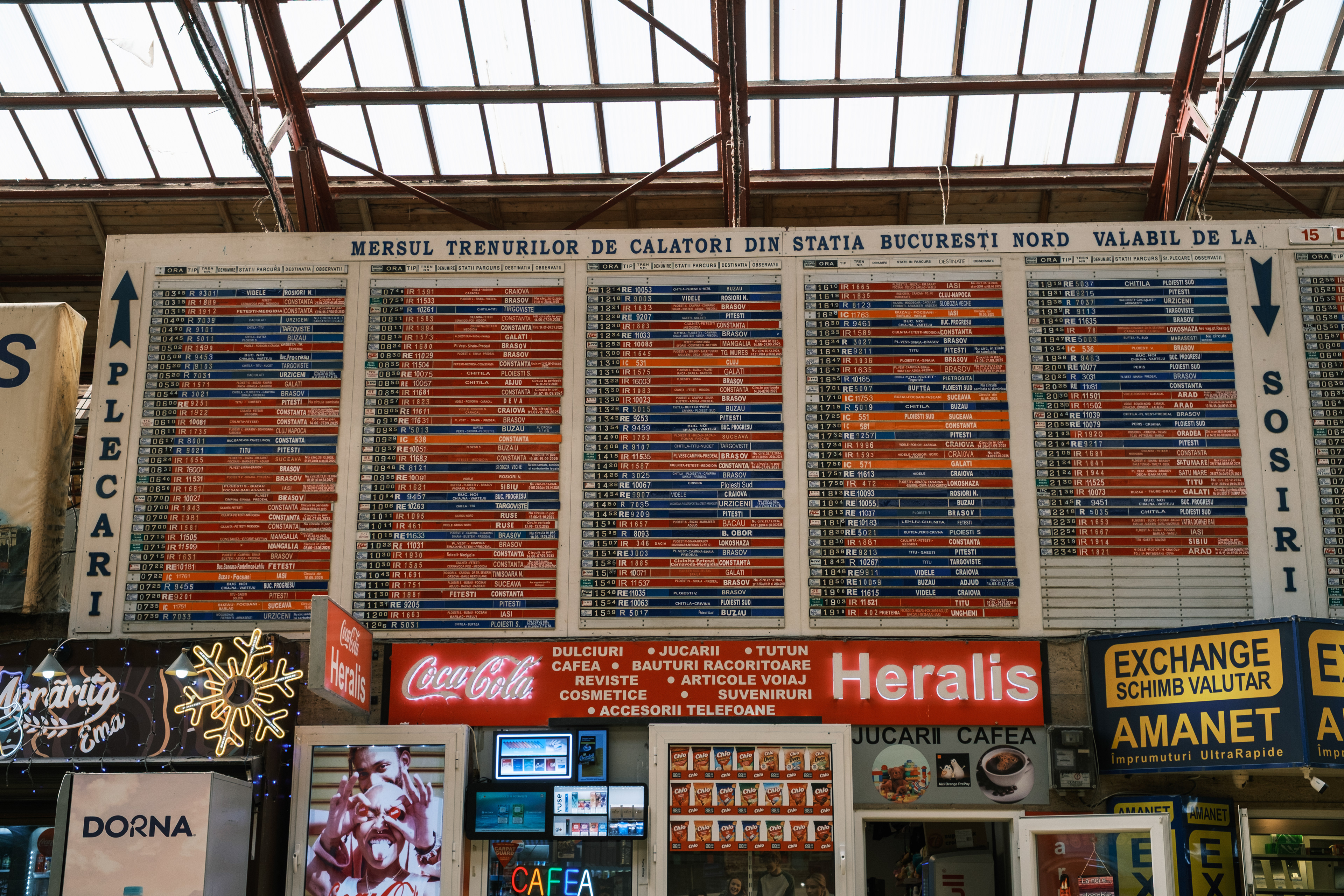 Nach dem Frühstück ging es für uns wieder Richtung Bahnhof. Wir hatten schon erwartet, dass Viktor uns vor dem Hotel abfangen und uns unbedingt zum Bahnhof fahren wollen würde. Dem war aber nicht so und so liefen wir auf der Hauptstraße zu unserem Zug. Dieser Zug war unser Zubringer zum Zug nach Bukarest. Bisher waren alle Züge, bis auf die Nachtzüge, immer pünktlich gewesen. Das sollte sich heute zum ersten Mal ändern. Der Zug nach Bukarest war mit +30 Minuten angeschlagen. Die Waggons standen jedoch schon am Gleis. Diese Waggons sollten jedoch noch mit dem Nachtzug aus Istanbul gekoppelt werden und dieser hatte eben jene Verspätung. Wir setzten uns schon einmal in unser Abteil, wo sich jemand schon breit gemacht hatte. Die Person war zwar nicht physisch anwesend, jedoch lag hier eine großer Reiserucksack, dort ein Einkaufstrolley, ein Schneidebrett auf dem Tisch mit Brot und zu unserer Besorgnis: Ein Gaskocher. Desweiteren roch es nach Käsefuß. Besagter Kram lag zudem auf unseren reservierten Sitzen. Wir setzten uns jedoch automatisch auf die Sitze am Gang um etwas Frischluft abzubekommen. Die Fenster konnte man zwar runterschieben, jedoch schnellten die meisten mit so einem Schwung wieder zu, dass wir es schnell aufgaben, hierfür eine Lösung zu konstruieren. Kurz vor Abfahrt gesellte sich besagter Fahrgast zu uns ins Abteil. Wie sich herausstelle war es ein Deutscher, der merkbar verwirrt reagierte, als er uns in "seinem" Abteil sitzen sah. Er kommentierte die Lage mit einem "ooh-kay?". Als er dann noch sein Energy-Drink umschmiss und er laut "Scheiße" rief, gesellte sich zu dem Käsefußgeruch auch noch der reudige Energy-Drink Geruch. Die nächsten sechs Stunden sollten super werden. Als der Zug endlich losfuhr, kam endlich frische Luft in das Abteil. Mit dem Deutschen entwickelte sich offensichtlich kein Gespräch, wir hatten ihm schließlich sein Abteil weggenommen, was ihm gar nicht gefiel. Ich wollte auch keine Szene eröffnen und um unsere Sitze kämpfen. So ignorierte man sich gegenseitig und beschäftigte sich mit Lesen und Videos schauen. Der Gaskocher kam zum Glück nicht zum Einsatz. Der Zug schaukelte mit gefühlten 60 km/h durch die Landschaft, doppelt so schnell wie noch in Serbien. Die Stunden vergingen zügig. Die Grenzkontrolle zu Rumänien verlief anstandslos, ein Hoch auf die EU. Es sollte die letzte Kontrolle der Reise werden. Der Bahnhof in Bukarest war endlich wieder ein richtiger Bahnhof. Voll mit Menschen, voll mit Zügen und geschäftiges Treiben. Das hatten wir die letzten Wochen bereits vermisst. Es gab sogar richtige Bahnsteige..mit Anzeigen! Wahnsinn. Ich hatte uns ein Apartement direkt am Bahnhof organisiert, damit man sich nicht erst noch durch die Stadt schleppen musste. Auch wenn wir heute nur im Zug saßen, waren wir doch nach sieben Stunden Reisezeit sehr müde. Wir gingen noch etwas im Supermarkt einkaufen und kochten uns leckere Spaghetti Carbonara in unserer Unterkunft.
